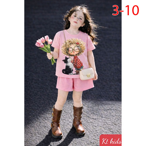 A507715 - Bộ thun đùi sành điệu thun cotton in Kitty cô bé_Size 3-10