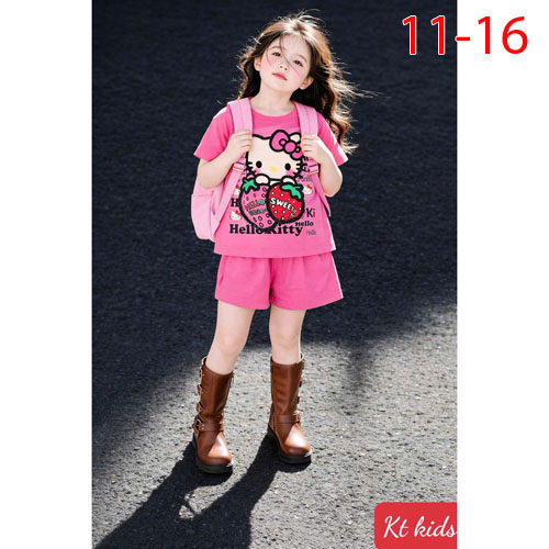 A507724 - Bộ thun đùi sành điệu thun cotton in Kitty cô bé_Size 11-16