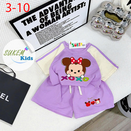 A507746 - Bộ short siêu cưng cho bé gái thun cotton 4c áo may tay ráp lăng phối màu chạy dây viền ép
