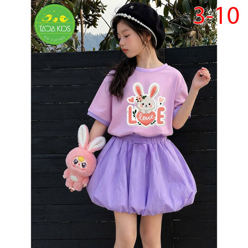A507959 - Set váy bí chíp phối áo lên fom siêu kute thun cotton in thỏ Love_Size 3-10