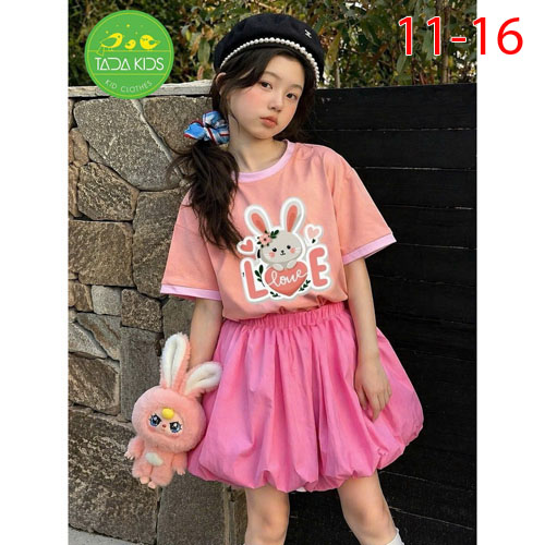 A507965 - Set váy bí chíp phối áo lên fom siêu kute thun cotton in thỏ Love_Size 11-16