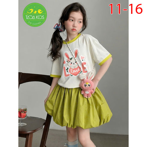 A507970 - Set váy bí chíp phối áo lên fom siêu kute thun cotton in thỏ Love_Size 11-16