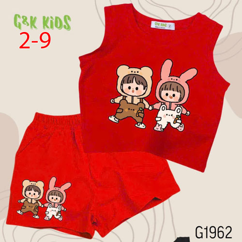 A508032 - Bộ quần đùi áo sát nách bé gái chất thun coton 4c in 2 đứa bé_Size 2-9