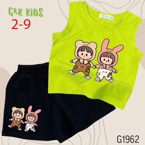 A508036 - Bộ quần đùi áo sát nách bé gái chất thun coton 4c in 2 đứa bé_Size 2-9