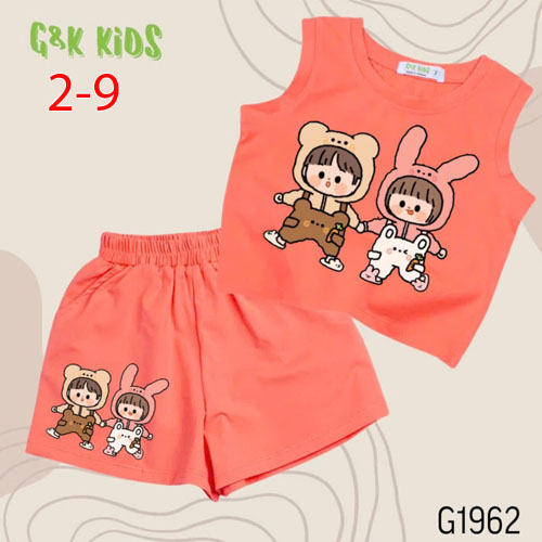 A508043 - Bộ quần đùi áo sát nách bé gái chất thun coton 4c in 2 đứa bé_Size 2-9