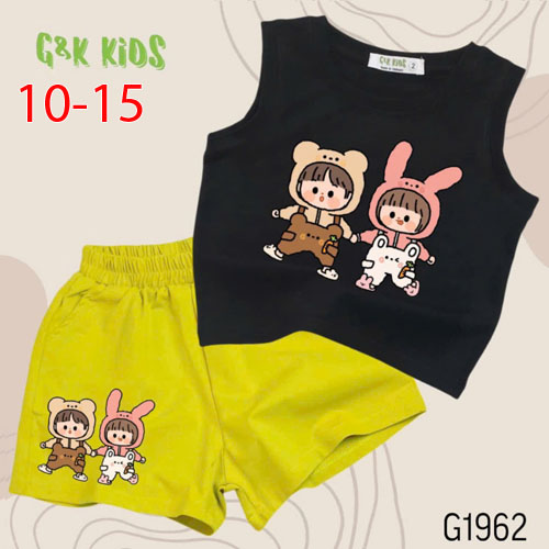 A508050 - Bộ quần đùi áo sát nách bé gái chất thun coton 4c in 2 đứa bé_Size 10-15