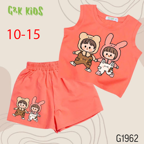 A508054 - Bộ quần đùi áo sát nách bé gái chất thun coton 4c in 2 đứa bé_Size 10-15