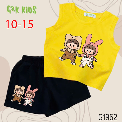 A508056 - Bộ quần đùi áo sát nách bé gái chất thun coton 4c in 2 đứa bé_Size 10-15