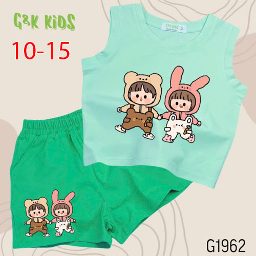 A508059 - Bộ quần đùi áo sát nách bé gái chất thun coton 4c in 2 đứa bé_Size 10-15