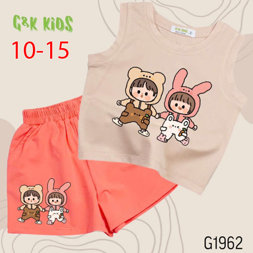 A508064 - Bộ quần đùi áo sát nách bé gái chất thun coton 4c in 2 đứa bé_Size 10-15