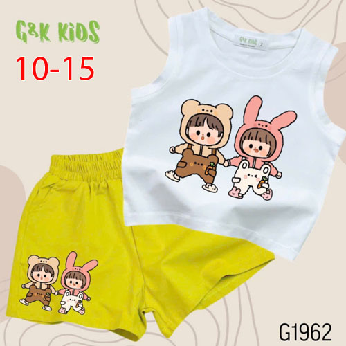 A508066 - Bộ quần đùi áo sát nách bé gái chất thun coton 4c in 2 đứa bé_Size 10-15