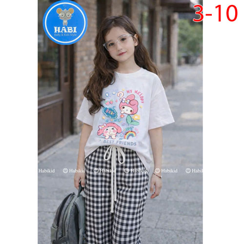 A508070 - Set bộ quần dài sọc carô bé gái Best Friend áo thun cotton quần dài sọc carô ống suôn_Size