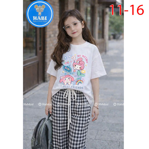 A508075 - Set bộ quần dài sọc carô bé gái Best Friend áo thun cotton quần dài sọc carô ống suôn_Size