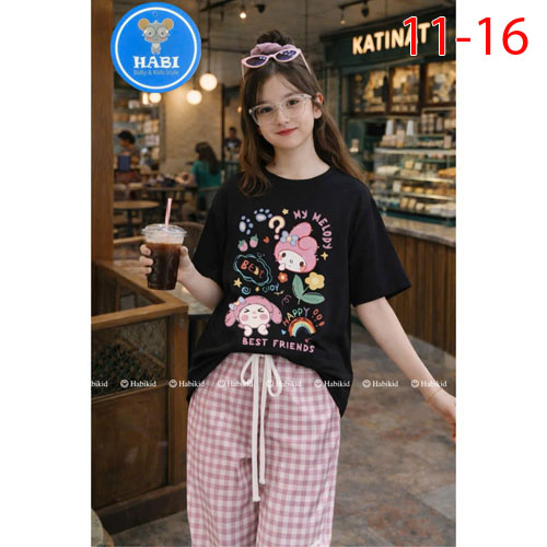 A508078 - Set bộ quần dài sọc carô bé gái Best Friend áo thun cotton quần dài sọc carô ống suôn_Size
