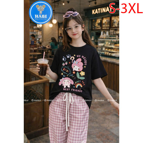 A508079 - Set bộ quần dài sọc carô bé gái Best Friend áo thun cotton quần dài sọc carô ống suôn_Size