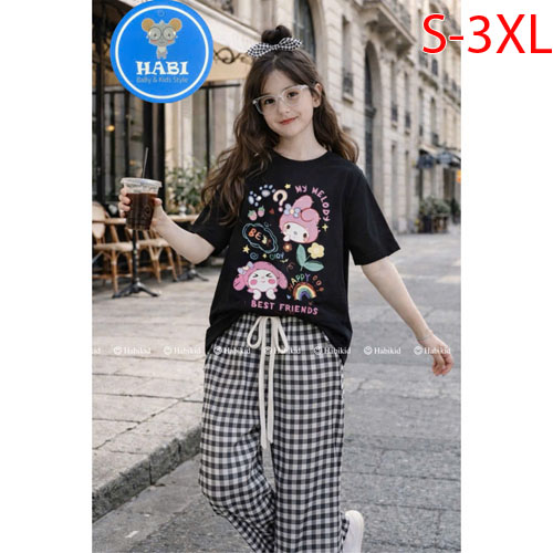 A508081 - Set bộ quần dài sọc carô bé gái Best Friend áo thun cotton quần dài sọc carô ống suôn_Size