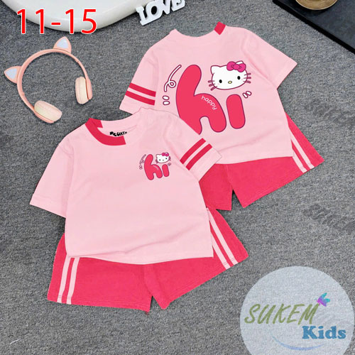 A508142 - Bộ short thể thao siêu cưng cho bé gái thun cotton 4c áo may cổ phối màu chạy dây viền ép