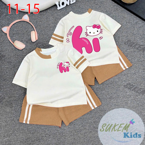 A508146 - Bộ short thể thao siêu cưng cho bé gái thun cotton 4c áo may cổ phối màu chạy dây viền ép