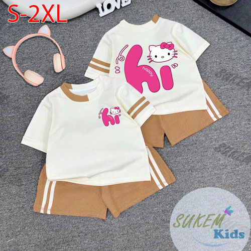 A508149 - Bộ short thể thao siêu cưng cho bé gái thun cotton 4c áo may cổ phối màu chạy dây viền ép