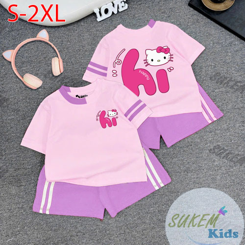 A508152 - Bộ short thể thao siêu cưng cho bé gái thun cotton 4c áo may cổ phối màu chạy dây viền ép