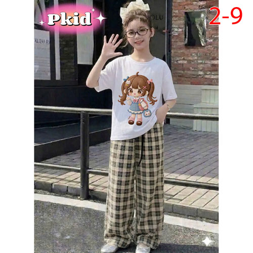 A508167 - Set bé gái áo chất thun cotton in cô bé quần chất katê cotton mềm mịn_Size 2-9