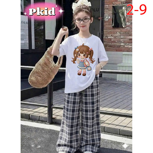 A508168 - Set bé gái áo chất thun cotton in cô bé quần chất katê cotton mềm mịn_Size 2-9