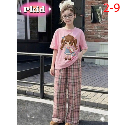 A508174 - Set bé gái áo chất thun cotton in cô bé quần chất katê cotton mềm mịn_Size 2-9