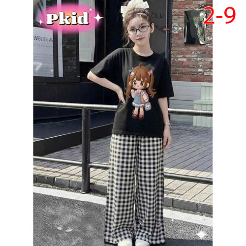 A508175 - Set bé gái áo chất thun cotton in cô bé quần chất katê cotton mềm mịn_Size 2-9