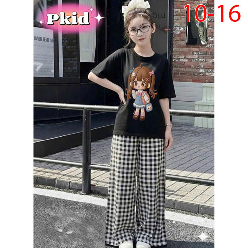 A508180 - Set bé gái áo chất thun cotton in cô bé quần chất katê cotton mềm mịn_Size 10-16