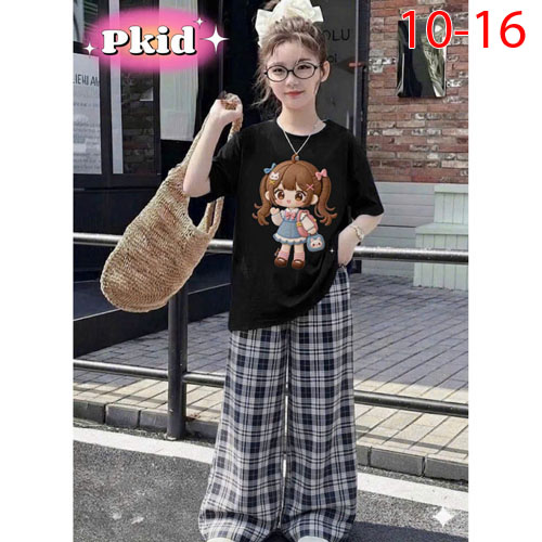A508186 - Set bé gái áo chất thun cotton in cô bé quần chất katê cotton mềm mịn_Size 10-16