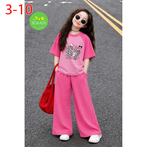A508229 - Bộ cotton bé gái siêu kute cotton 4 chiều mềm mại áo in số 67 mix quần dáng suông_Size 3-1