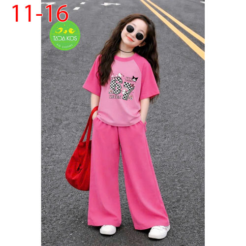 A508232 - Bộ cotton bé gái siêu kute cotton 4 chiều mềm mại áo in số 67 mix quần dáng suông_Size 11-