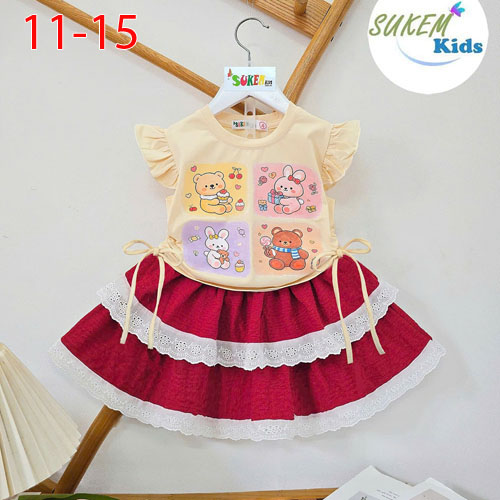 A508252 - Set ép thỏ cute áo rút dây với thiết kế chân váy may 2 tầng vải chuyên dụng chân váy chạy