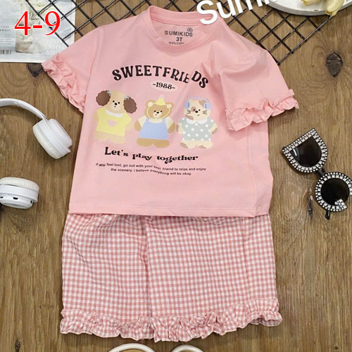 A508553 - (28/4)Bộ kiểu phong cách xinh xắn cho bé gái áo tay đắp bèo thun cotton 4c quần chất caro