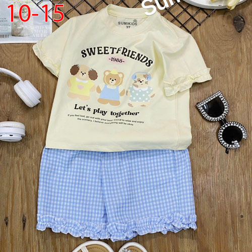 A508559 - (28/4)Bộ kiểu phong cách xinh xắn cho bé gái áo tay đắp bèo thun cotton 4c quần chất caro