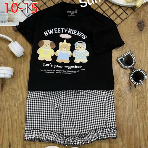 A508562 - (28/4)Bộ kiểu phong cách xinh xắn cho bé gái áo tay đắp bèo thun cotton 4c quần chất caro