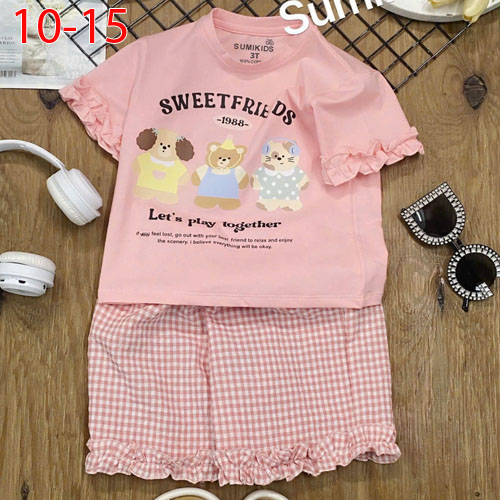 A508564 - (28/4)Bộ kiểu phong cách xinh xắn cho bé gái áo tay đắp bèo thun cotton 4c quần chất caro
