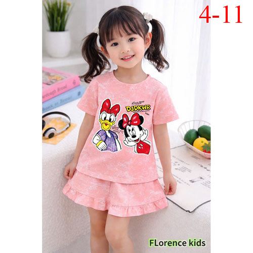 A508611 - Bộ đùi loang lai bèo dễ thương cho bé gái thun cotton 4c in Mickey con ngựa_Size 4-11