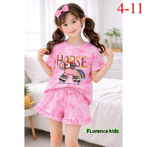 A508613 - Bộ đùi loang lai bèo dễ thương cho bé gái thun cotton 4c in Mickey con ngựa_Size 4-11