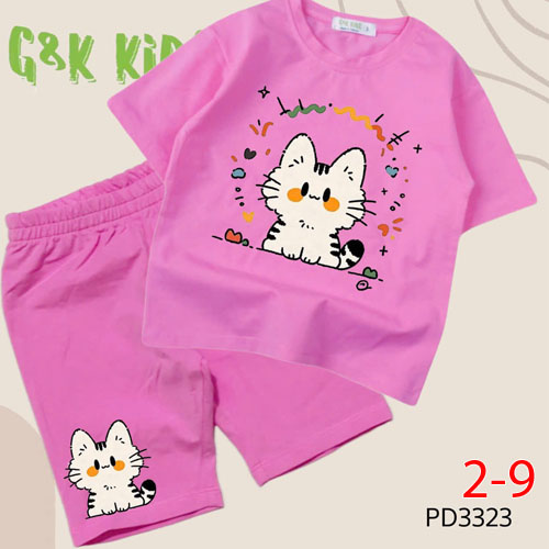 A508638 - Bộ áo phom rộng quần ngố bé gái chất thun coton 4c in mèo_Size 2-9