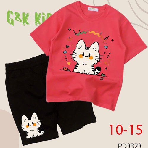 A508660 - Bộ áo phom rộng quần ngố bé gái chất thun coton 4c in mèo_Size 10-15