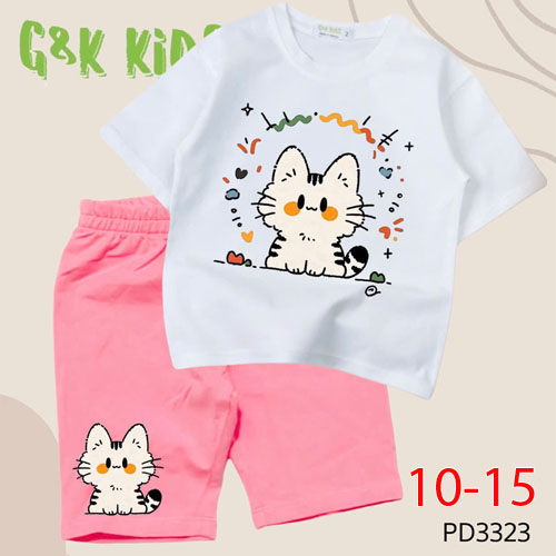A508669 - Bộ áo phom rộng quần ngố bé gái chất thun coton 4c in mèo_Size 10-15
