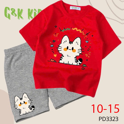 A508671 - Bộ áo phom rộng quần ngố bé gái chất thun coton 4c in mèo_Size 10-15