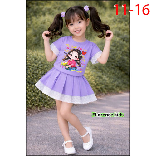 A508680 - Set váy cực xinh cho bé thun coton 4 chiều in Kitty cô bé chân váy xếp ly phối ren kèm chi