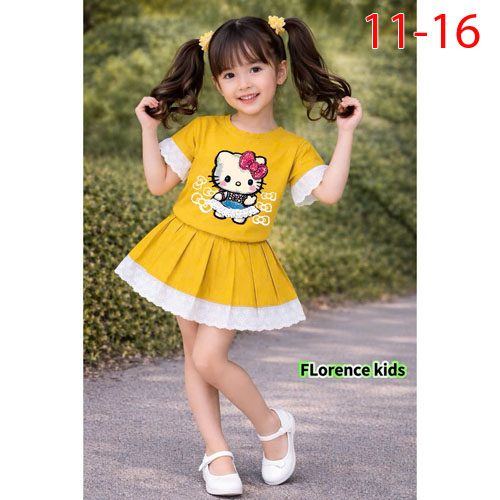 A508685 - Set váy cực xinh cho bé thun coton 4 chiều in Kitty cô bé chân váy xếp ly phối ren kèm chi