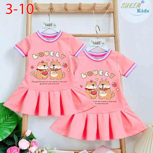 A508742 - Đầm thun may bo sọc sắc màu cưng xỉu xếp ly ép capybara_Size 3-10