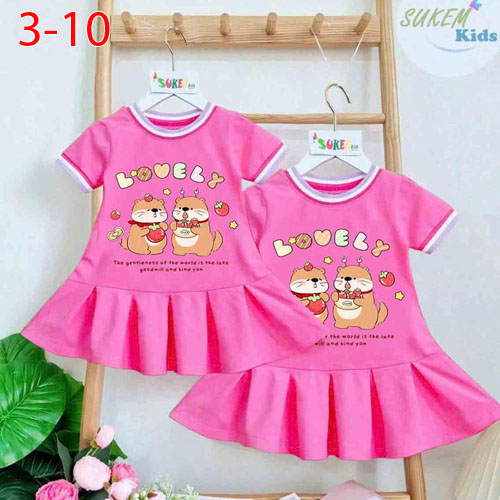 A508745 - Đầm thun may bo sọc sắc màu cưng xỉu xếp ly ép capybara_Size 3-10