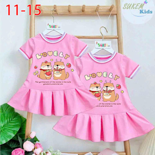 A508750 - (20/4)Đầm thun may bo sọc sắc màu cưng xỉu xếp ly ép capybara_Size 11-15