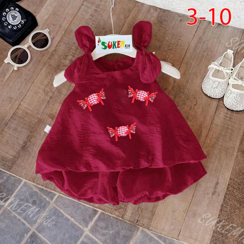 A508753 - Sét nơ áo thiết kế nơ 2 bên vai đính phụ kiện kẹo với quần váy may tùng bí_Size 3-10