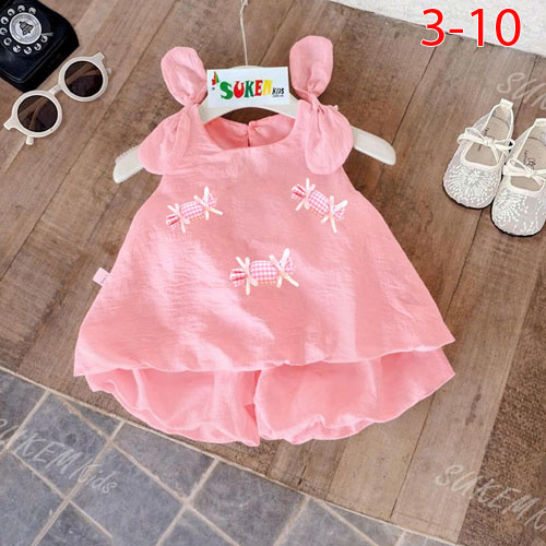 A508755 - Sét nơ áo thiết kế nơ 2 bên vai đính phụ kiện kẹo với quần váy may tùng bí_Size 3-10